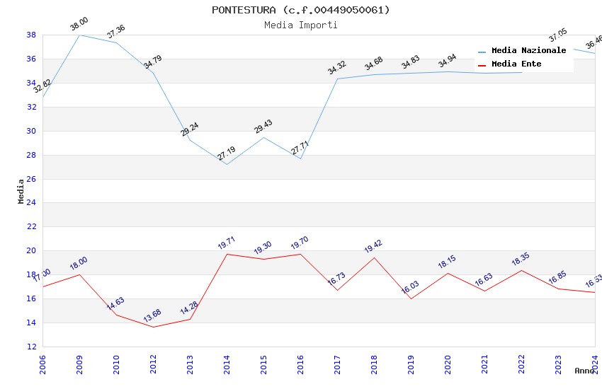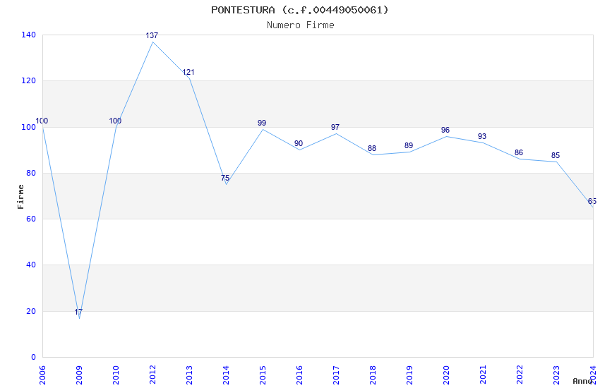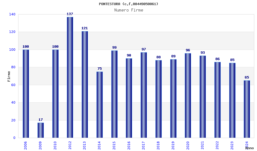 | Anno | Firme | Importi | Media | Naz. | Reg. | Prov. | Comu. |