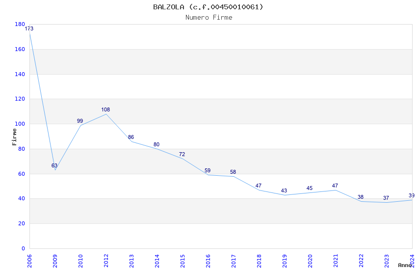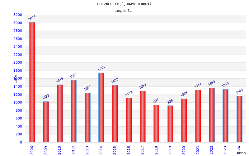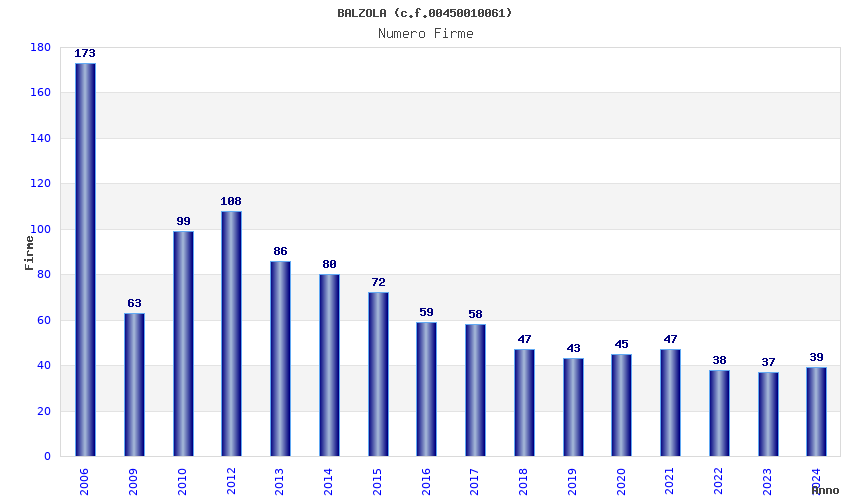 | Anno | Firme | Importi | Media | Naz. | Reg. | Prov. | Comu. |