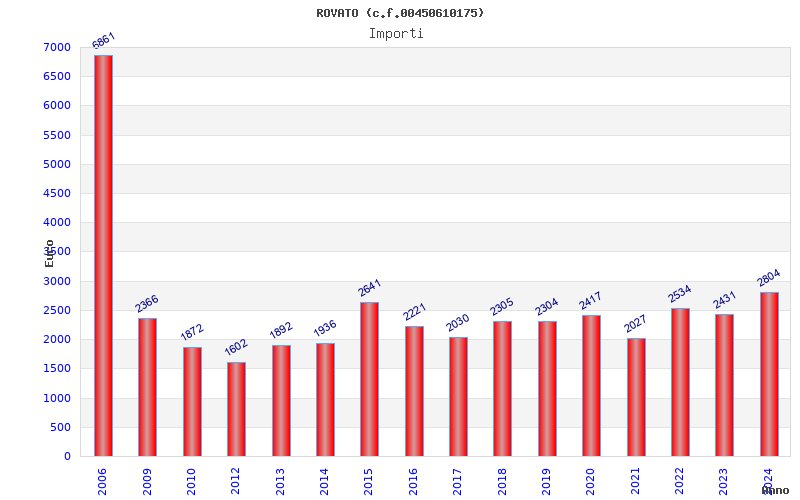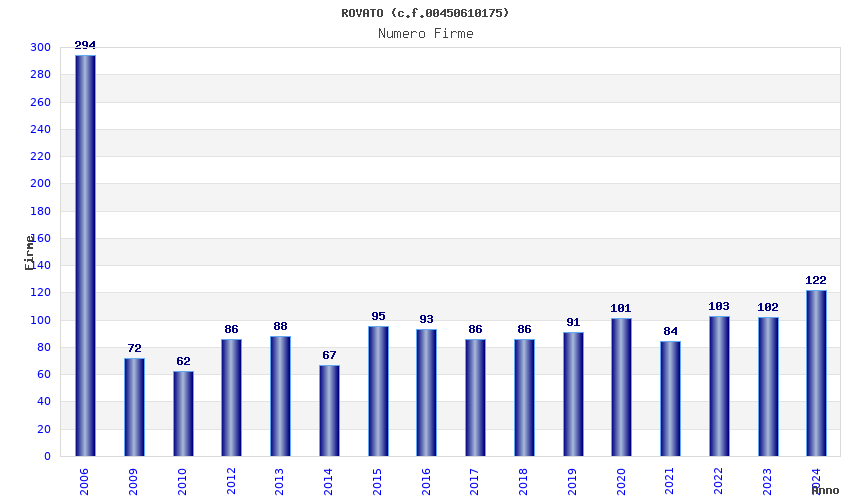 | Anno | Firme | Importi | Media | Naz. | Reg. | Prov. | Comu. |