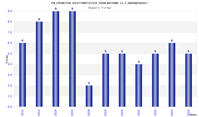 | Anno | Firme | Importi | Media | Naz. | Reg. | Prov. | Comu. |
