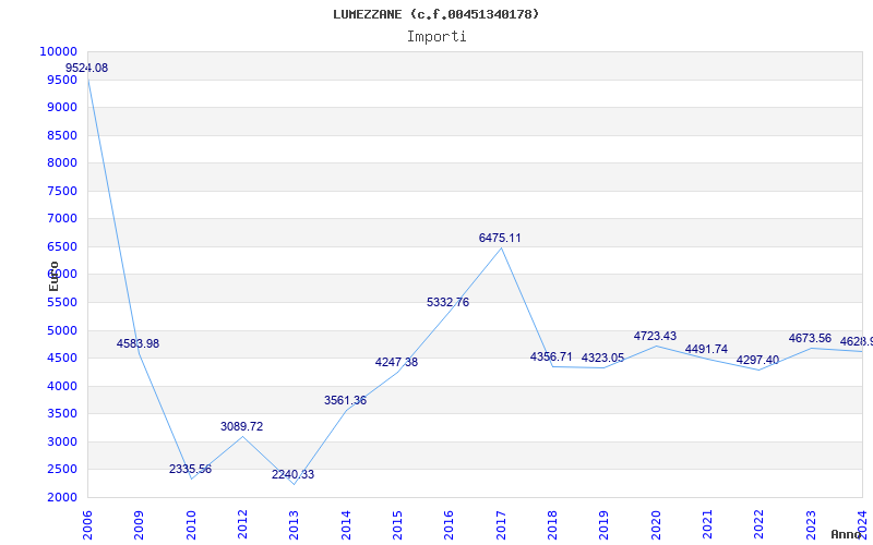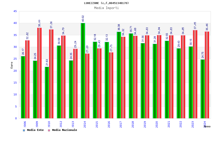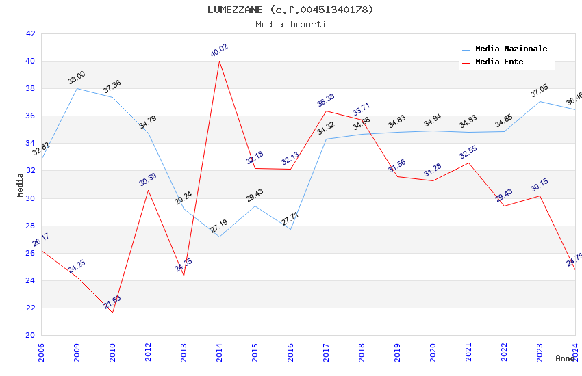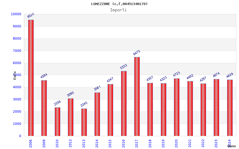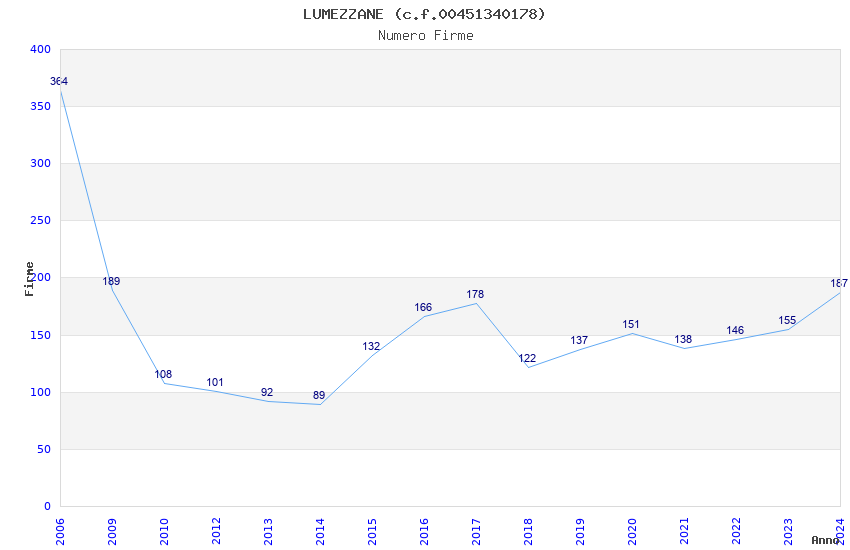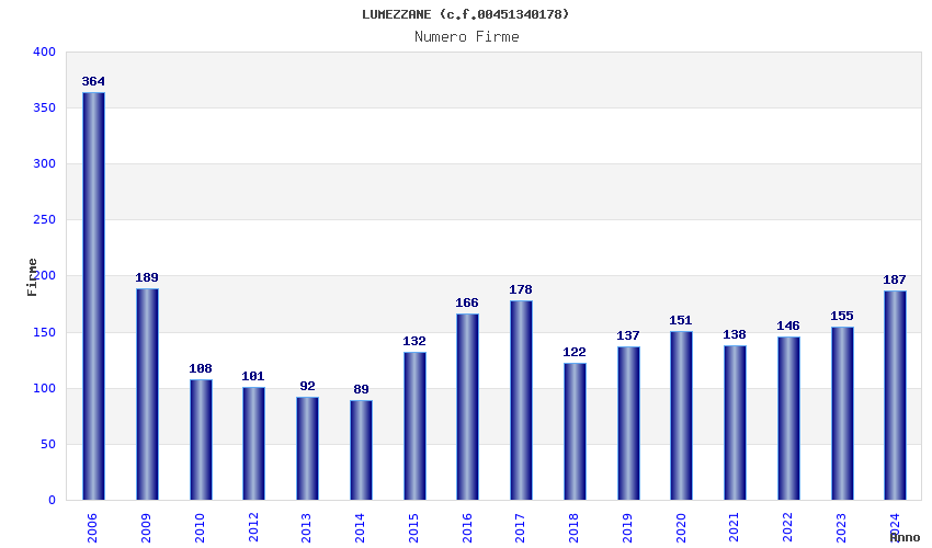 | Anno | Firme | Importi | Media | Naz. | Reg. | Prov. | Comu. |