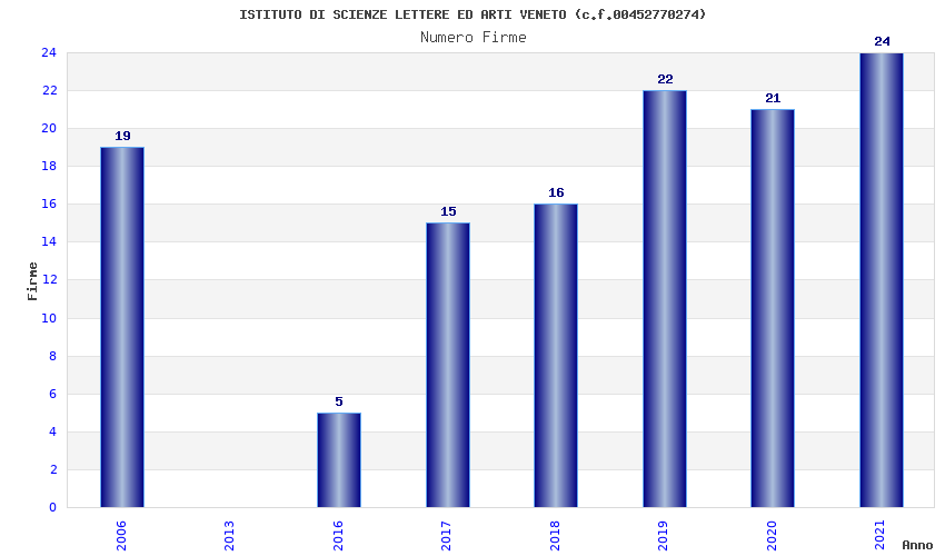 | Anno | Firme | Importi | Media | Naz. | Reg. | Prov. | Comu. |