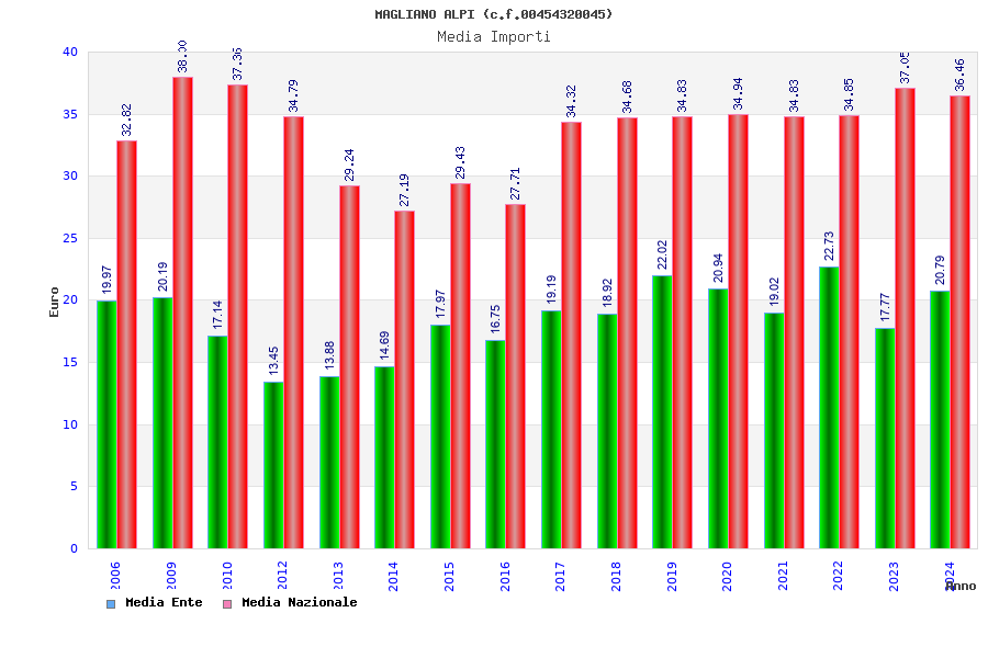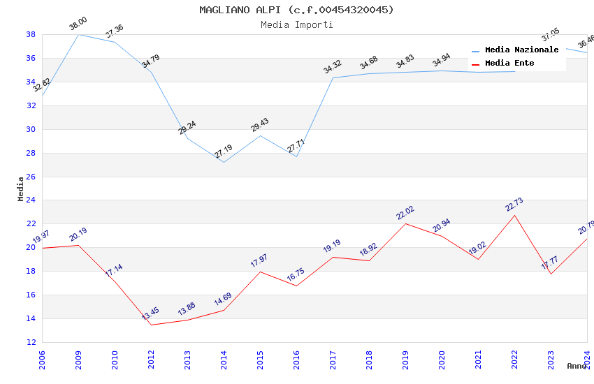 | Anno | Firme | Importi | Media | Naz. | Reg. | Prov. | Comu. |