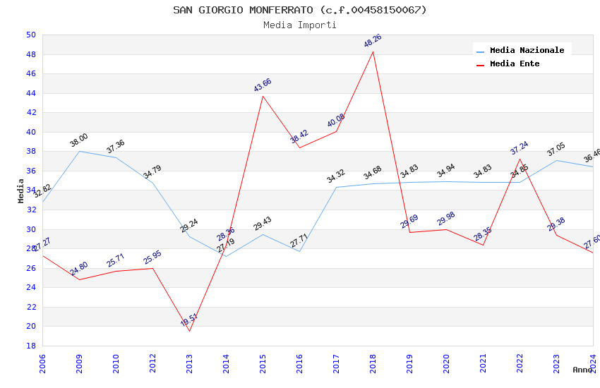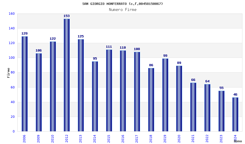 | Anno | Firme | Importi | Media | Naz. | Reg. | Prov. | Comu. |
