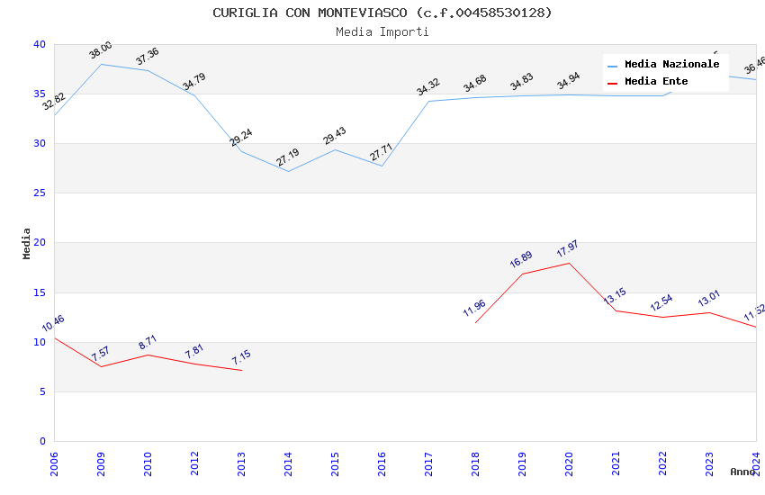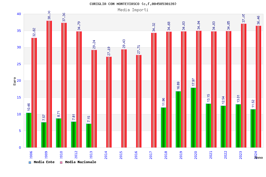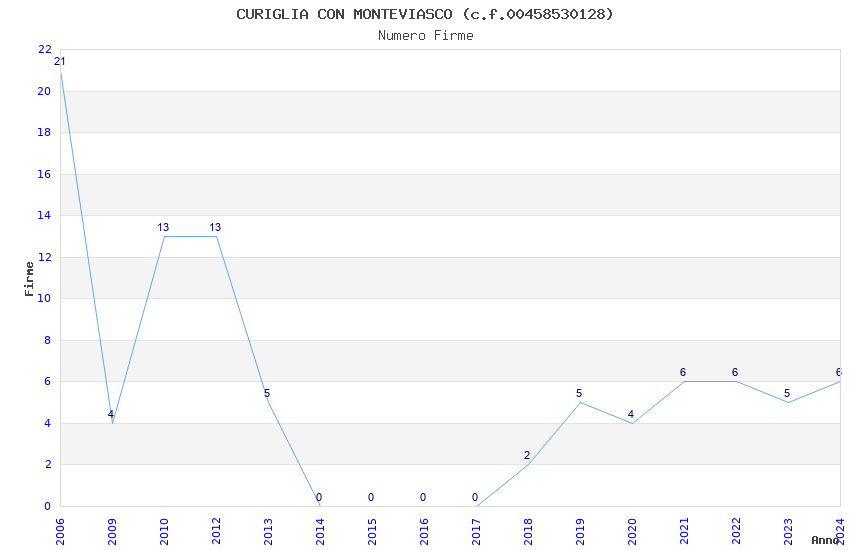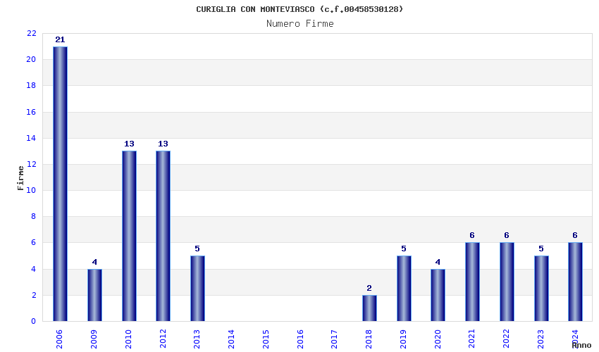 | Anno | Firme | Importi | Media | Naz. | Reg. | Prov. | Comu. |