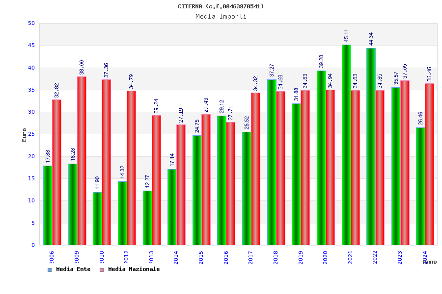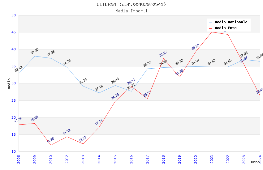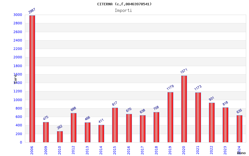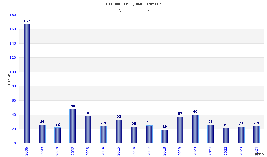 | Anno | Firme | Importi | Media | Naz. | Reg. | Prov. | Comu. |