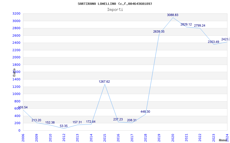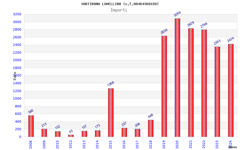 | Anno | Firme | Importi | Media | Naz. | Reg. | Prov. | Comu. |
