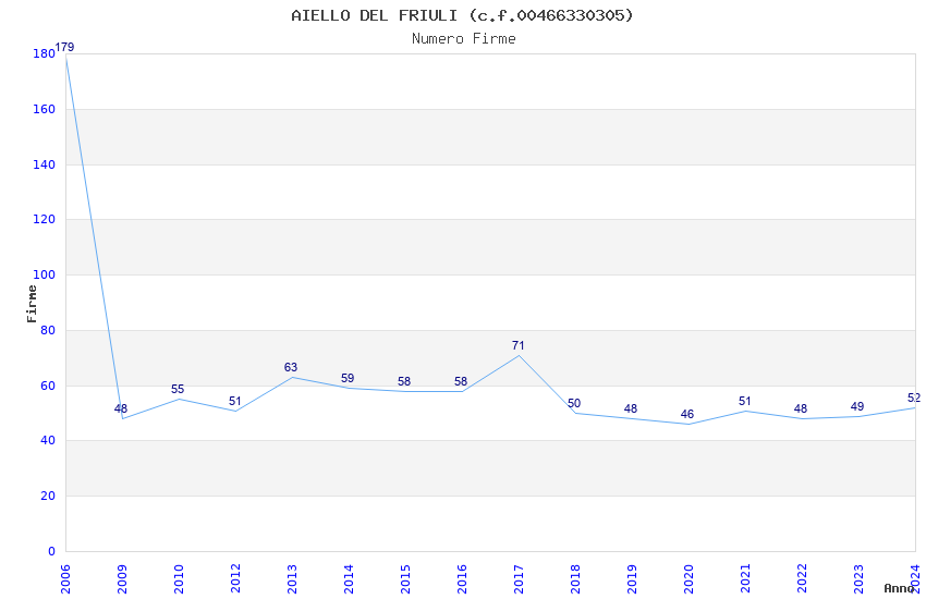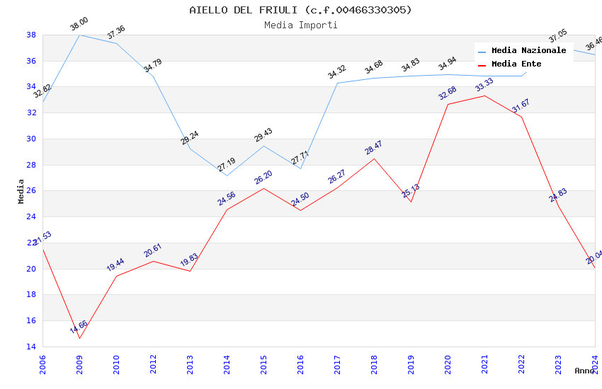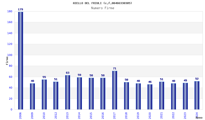 | Anno | Firme | Importi | Media | Naz. | Reg. | Prov. | Comu. |