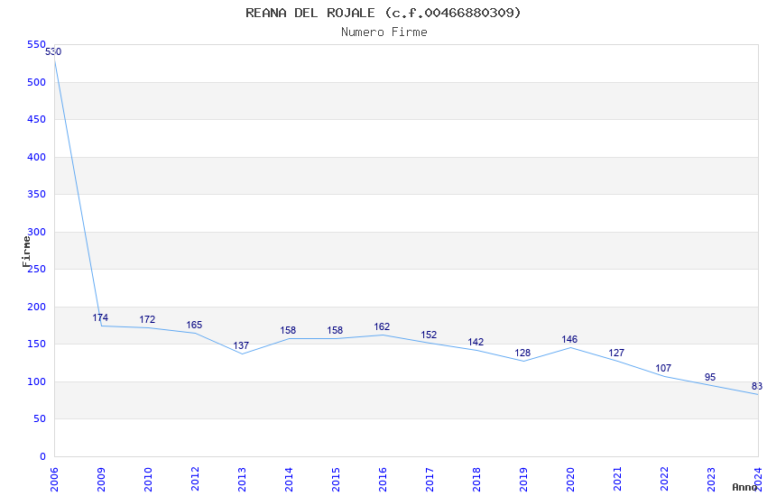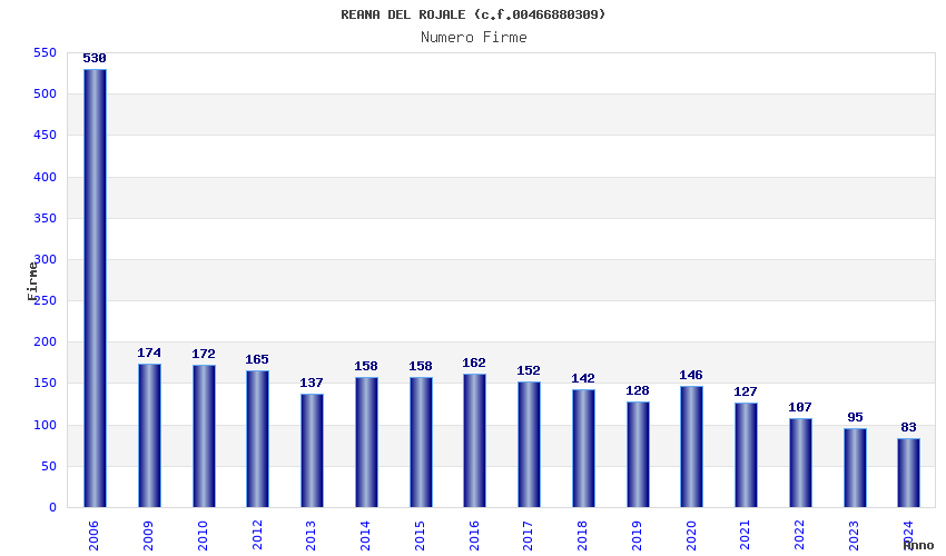 | Anno | Firme | Importi | Media | Naz. | Reg. | Prov. | Comu. |