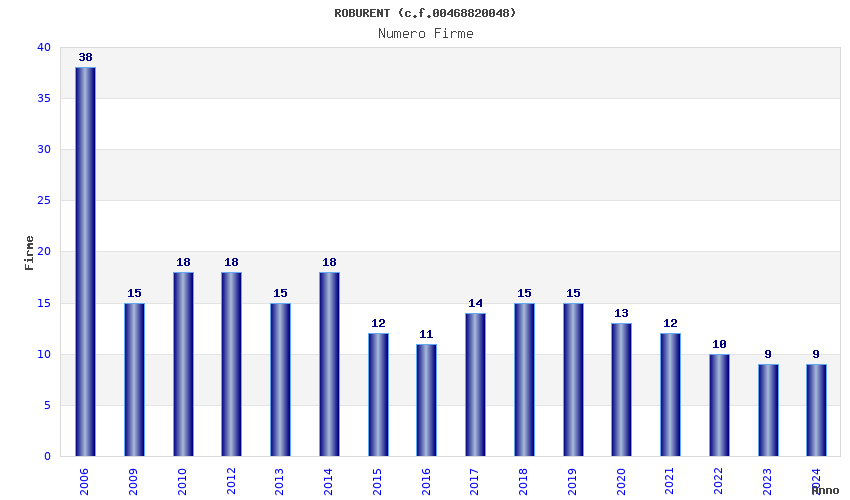 | Anno | Firme | Importi | Media | Naz. | Reg. | Prov. | Comu. |