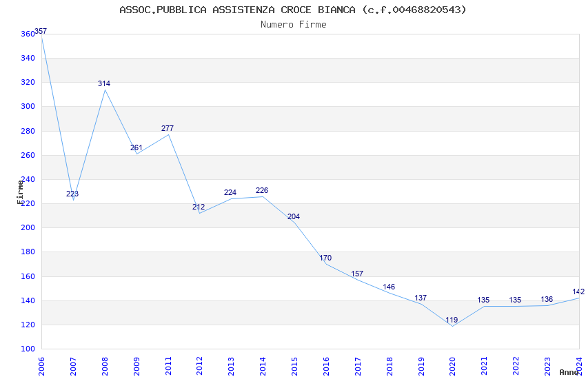 | 2024 | 142 | 3.164,00 | 22,28 | 16.606 | 228 | 182 | 16 |