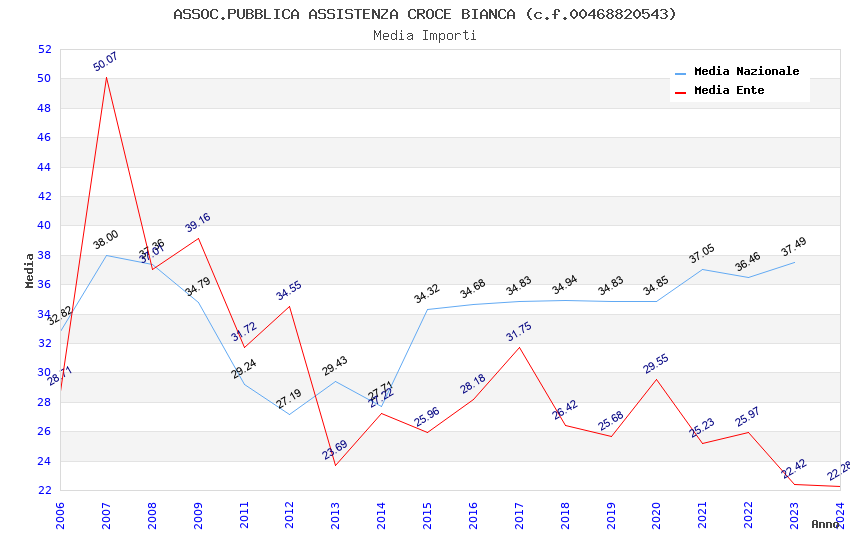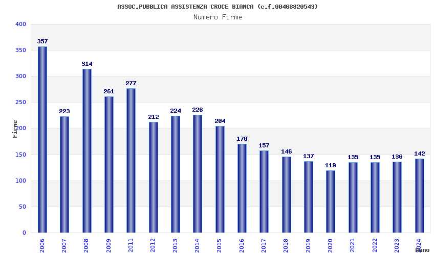 | Anno | Firme | Importi | Media | Naz. | Reg. | Prov. | Comu. |