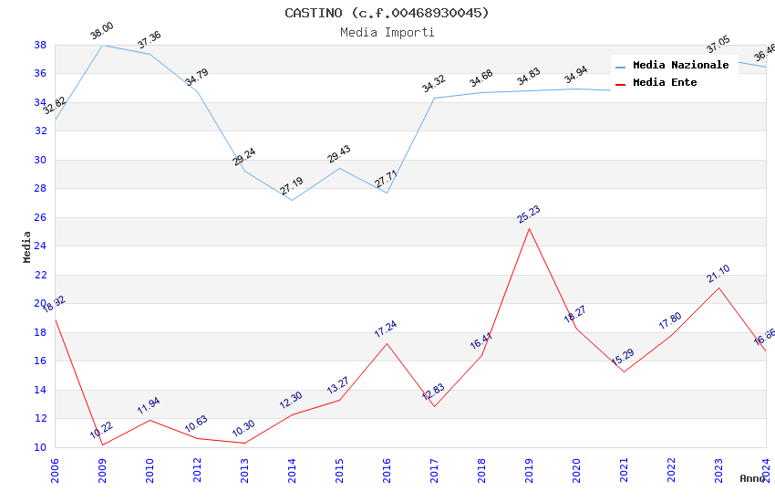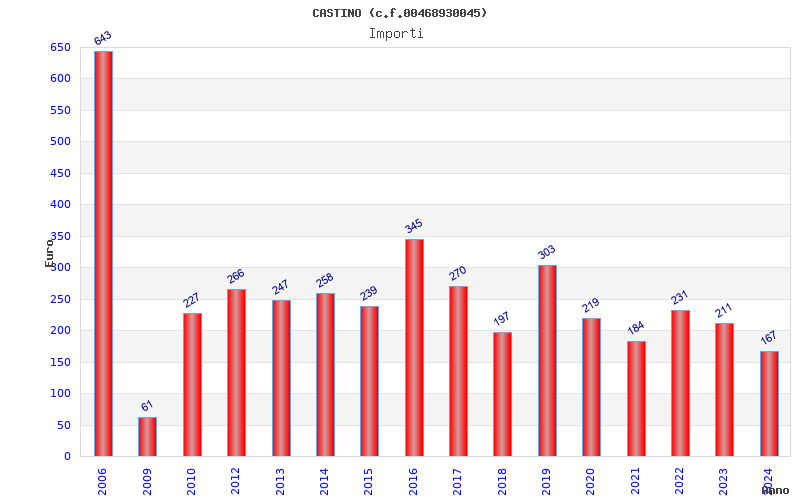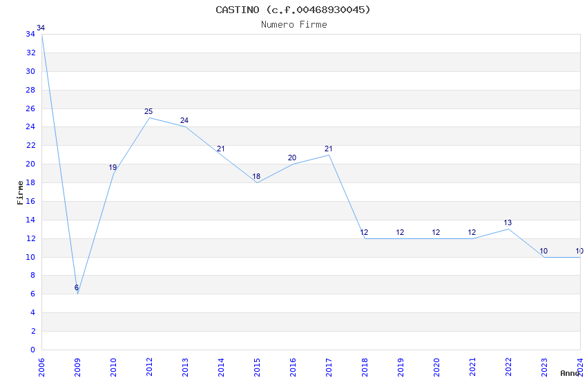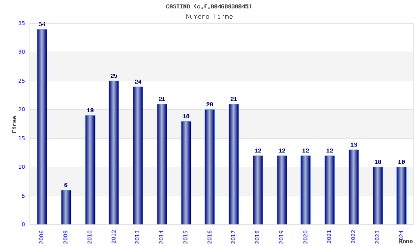 | Anno | Firme | Importi | Media | Naz. | Reg. | Prov. | Comu. |