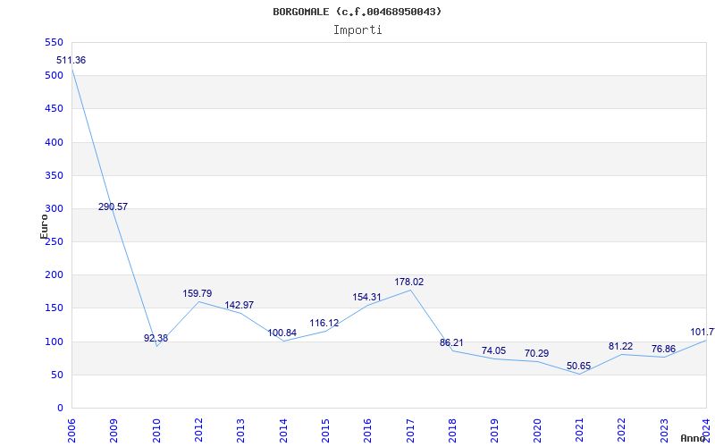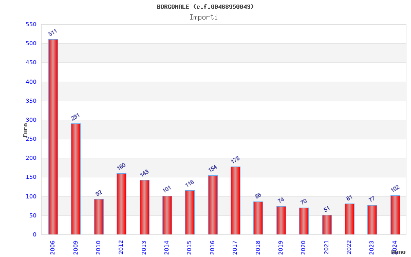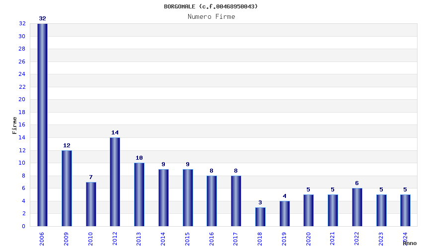 | Anno | Firme | Importi | Media | Naz. | Reg. | Prov. | Comu. |