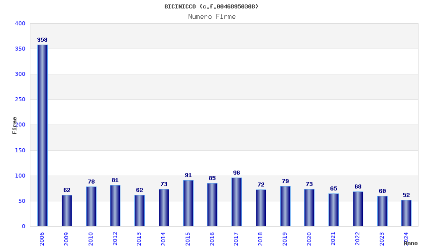 | Anno | Firme | Importi | Media | Naz. | Reg. | Prov. | Comu. |