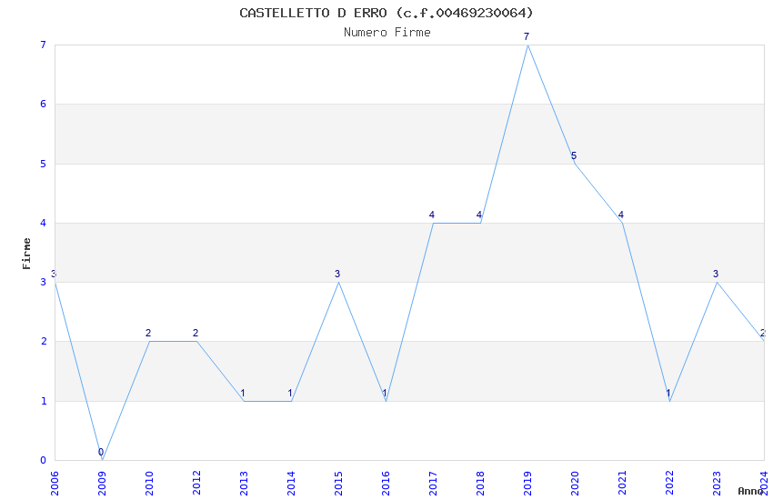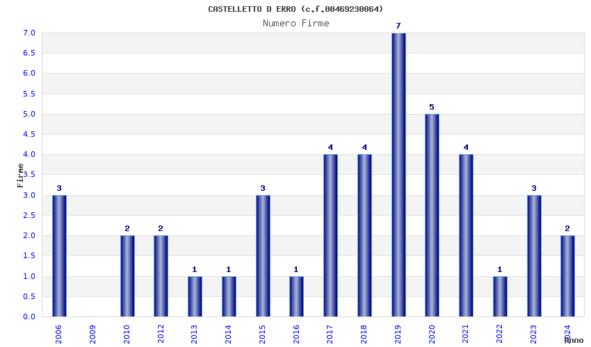| Anno | Firme | Importi | Media | Naz. | Reg. | Prov. | Comu. |