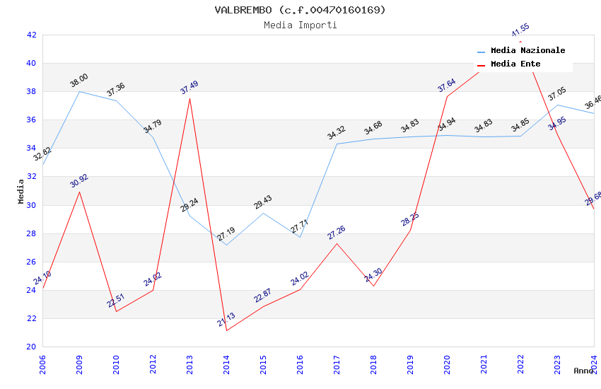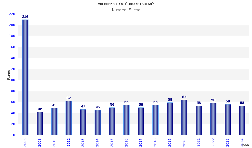 | Anno | Firme | Importi | Media | Naz. | Reg. | Prov. | Comu. |