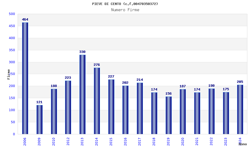 Anno Firme Importi Media Naz. Reg. Prov. Comu.