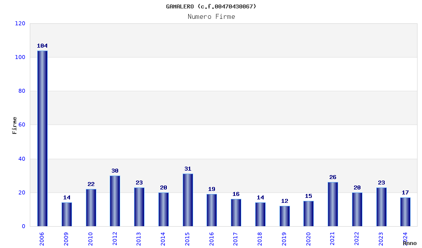 | Anno | Firme | Importi | Media | Naz. | Reg. | Prov. | Comu. |