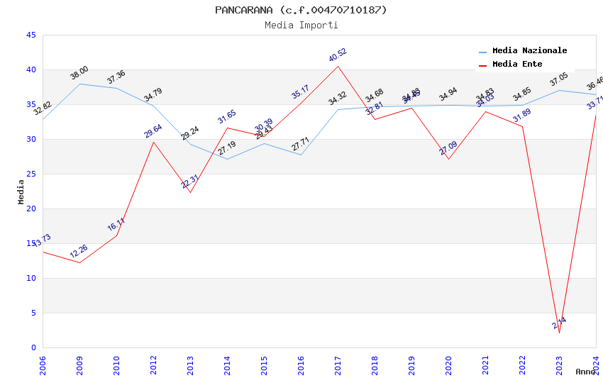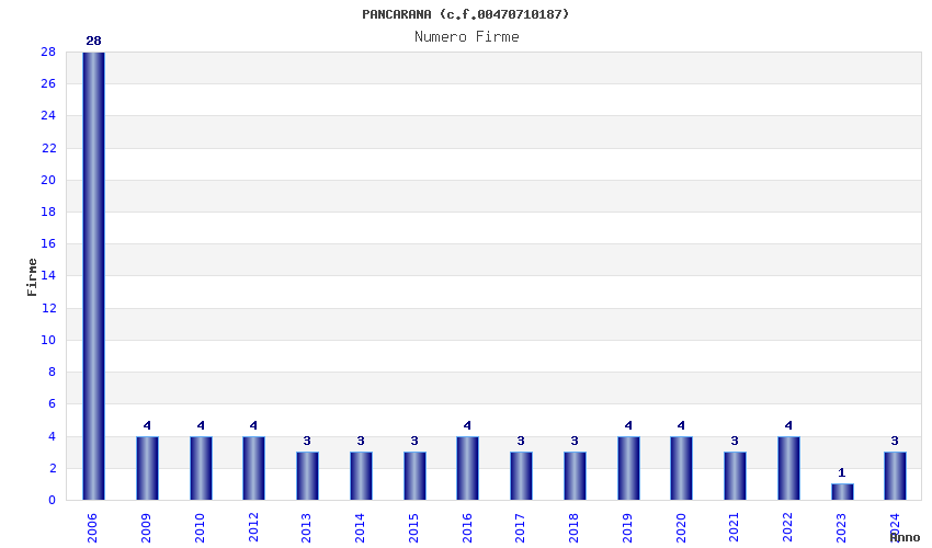 | Anno | Firme | Importi | Media | Naz. | Reg. | Prov. | Comu. |