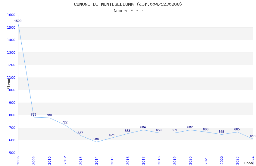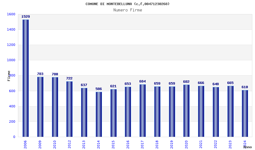 | Anno | Firme | Importi | Media | Naz. | Reg. | Prov. | Comu. |