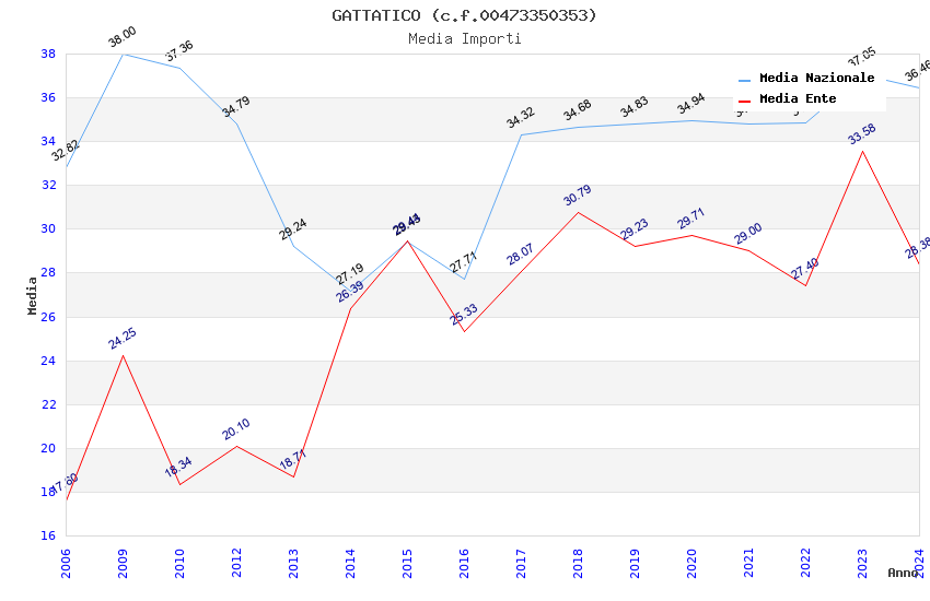 | Anno | Firme | Importi | Media | Naz. | Reg. | Prov. | Comu. |