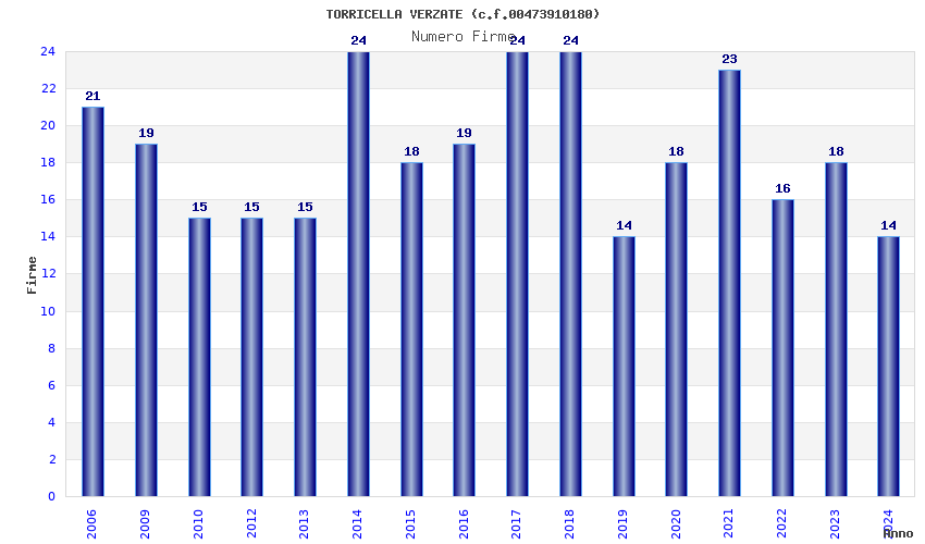 | Anno | Firme | Importi | Media | Naz. | Reg. | Prov. | Comu. |