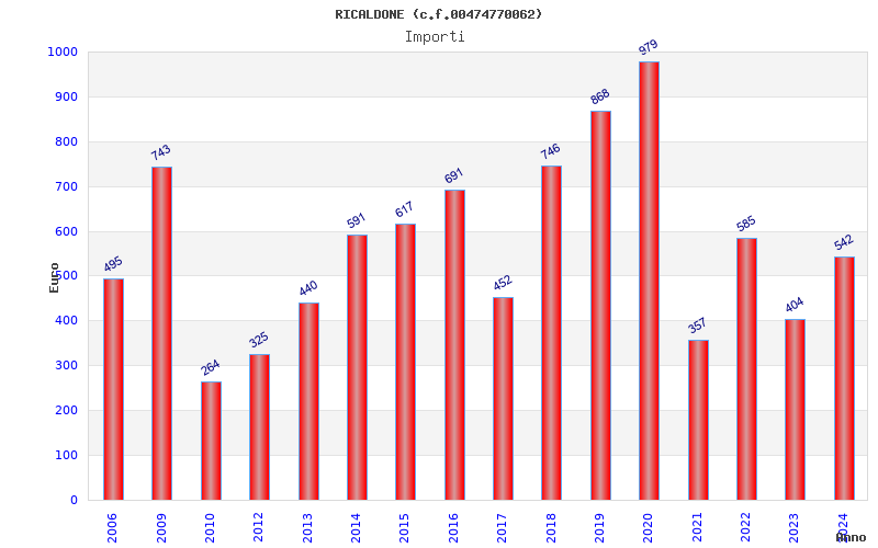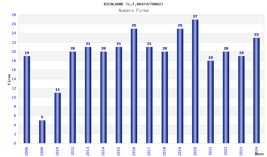 | Anno | Firme | Importi | Media | Naz. | Reg. | Prov. | Comu. |