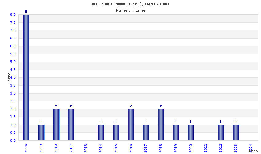 | Anno | Firme | Importi | Media | Naz. | Reg. | Prov. | Comu. |