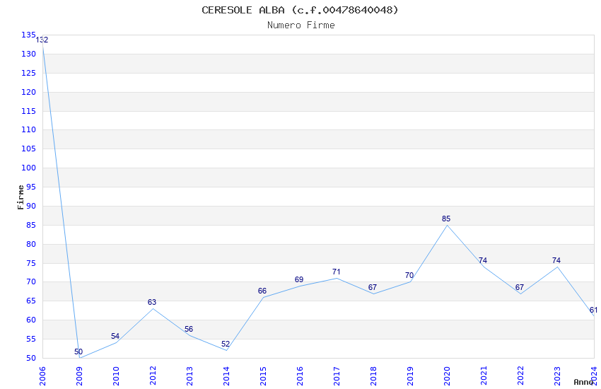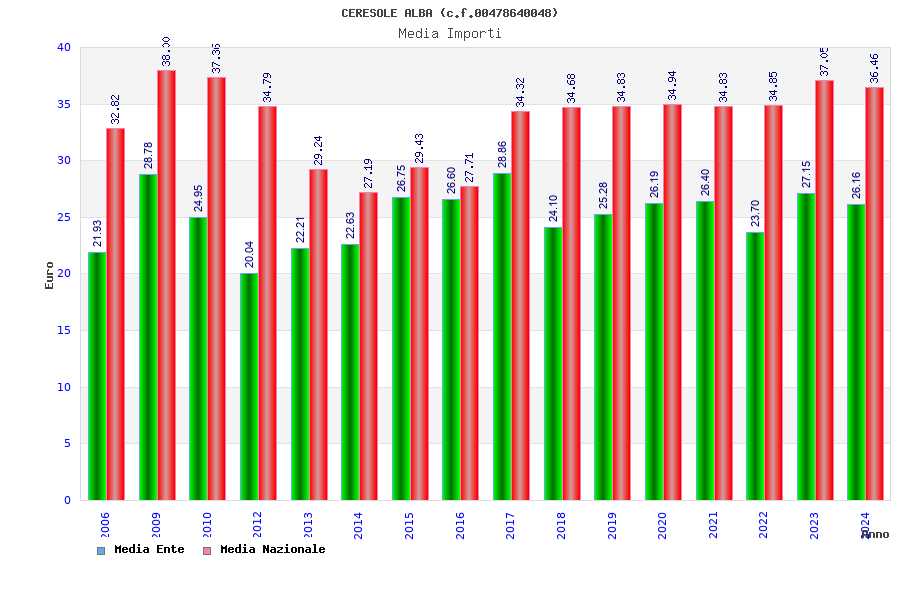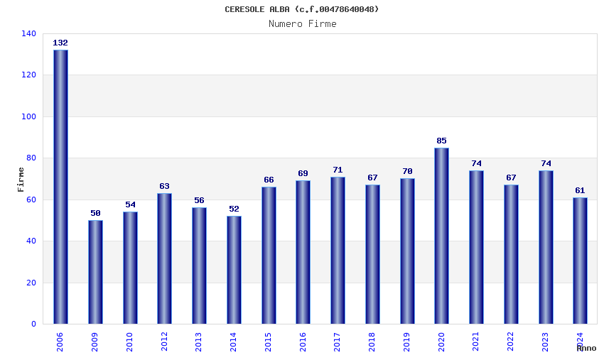 | Anno | Firme | Importi | Media | Naz. | Reg. | Prov. | Comu. |