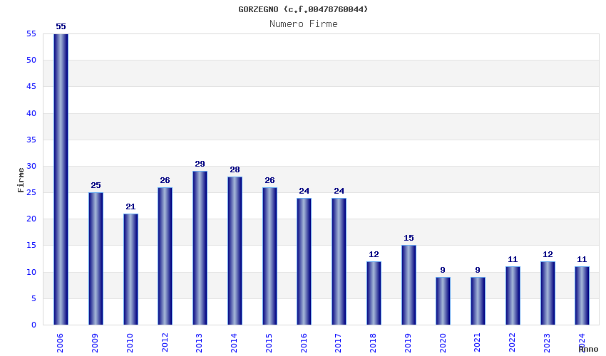 Anno Firme Importi Media Naz. Reg. Prov. Comu.