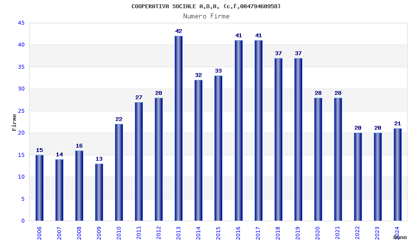 | Anno | Firme | Importi | Media | Naz. | Reg. | Prov. | Comu. |