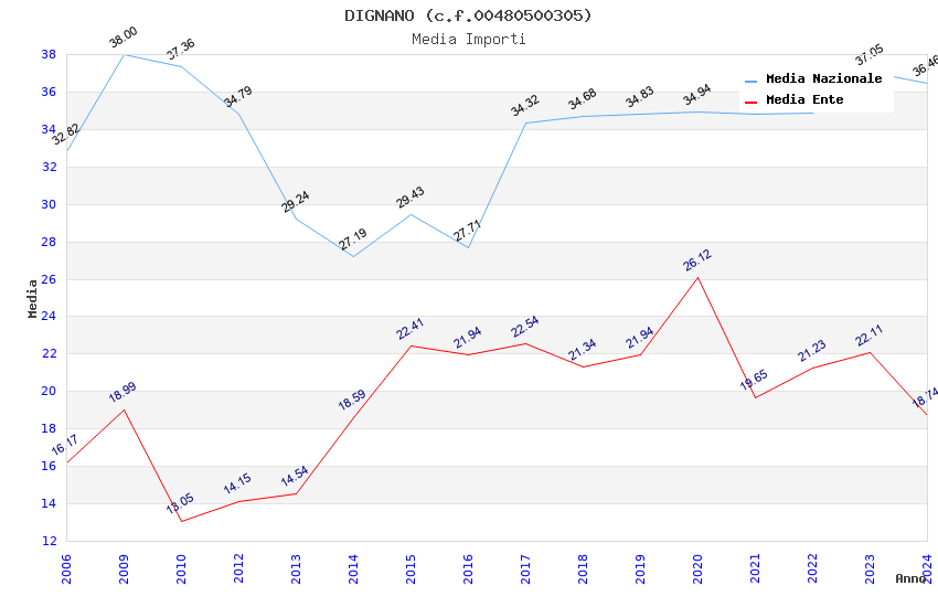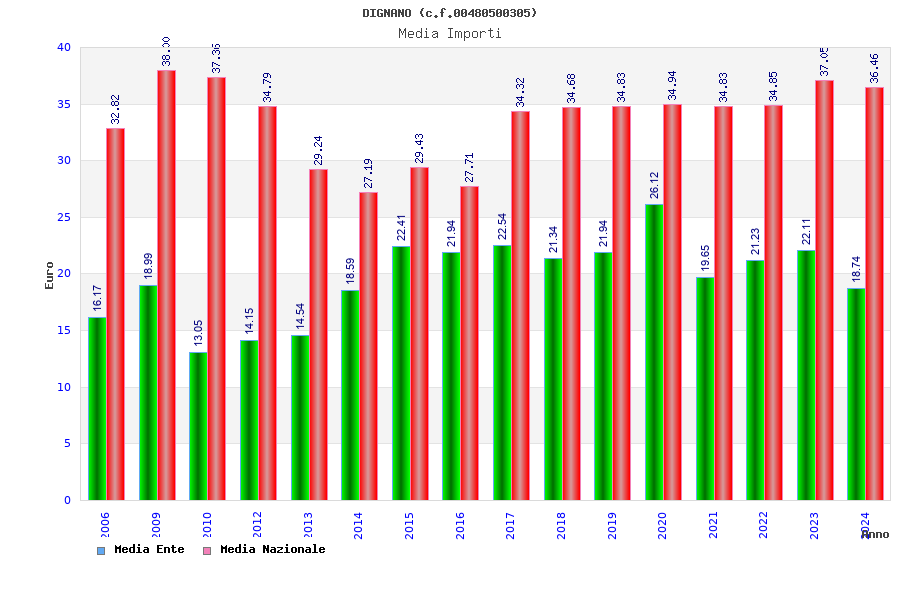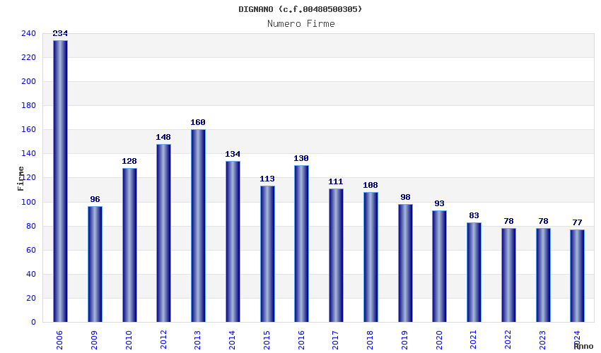 | Anno | Firme | Importi | Media | Naz. | Reg. | Prov. | Comu. |