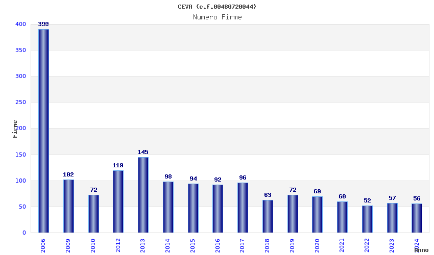 | Anno | Firme | Importi | Media | Naz. | Reg. | Prov. | Comu. |