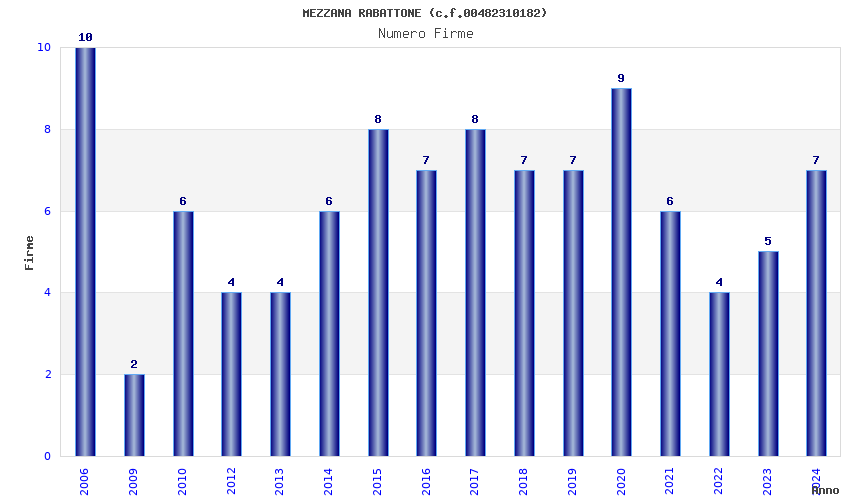 | Anno | Firme | Importi | Media | Naz. | Reg. | Prov. | Comu. |