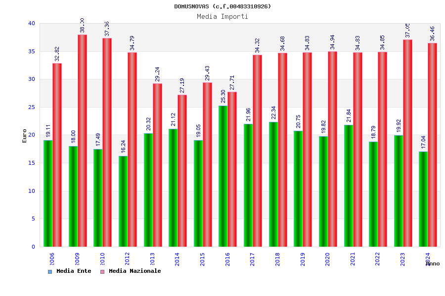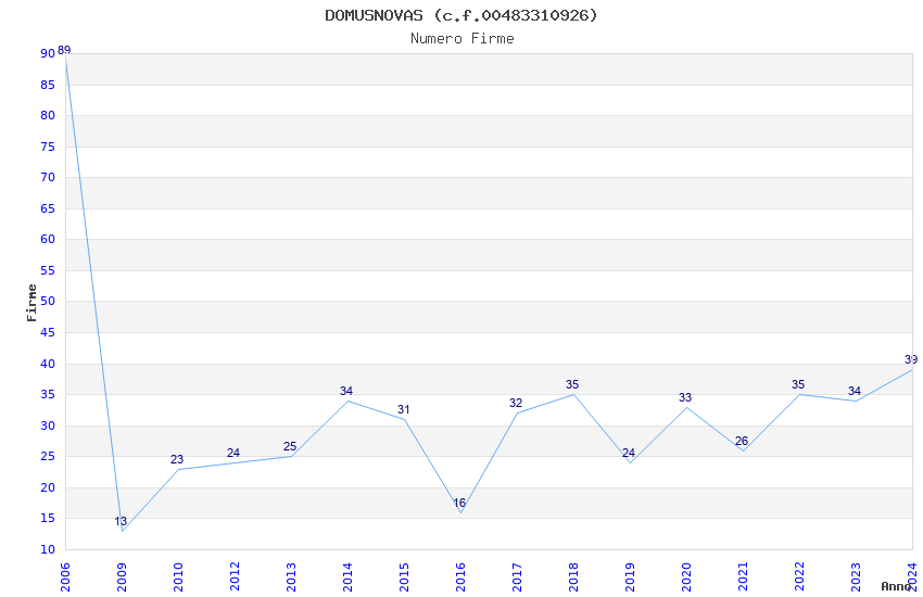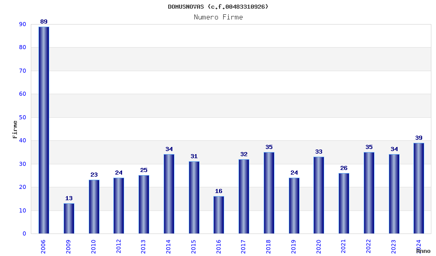 | Anno | Firme | Importi | Media | Naz. | Reg. | Prov. | Comu. |