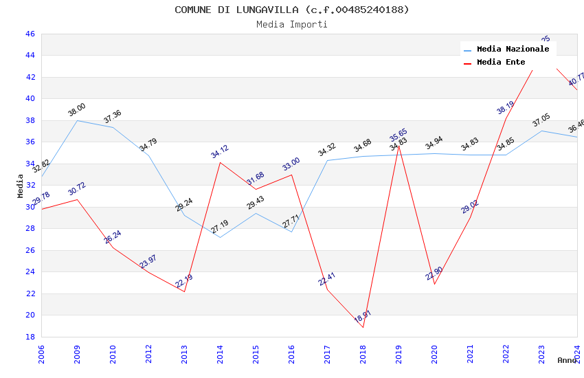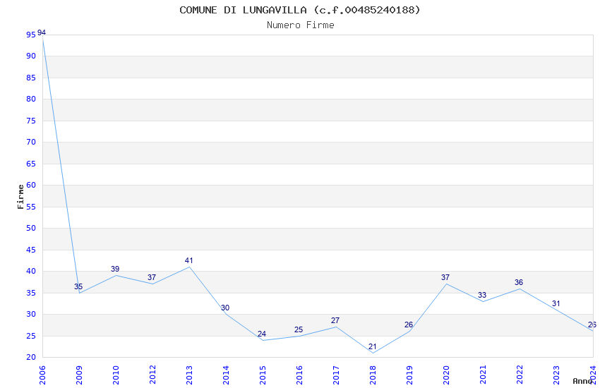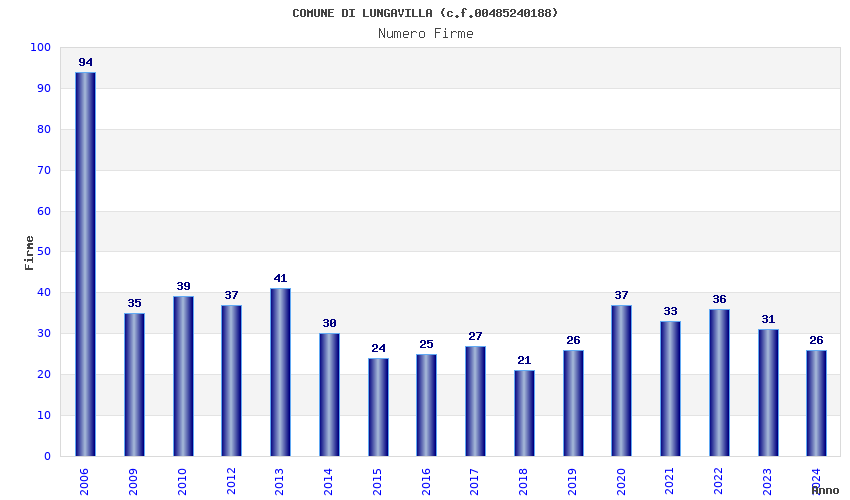 | Anno | Firme | Importi | Media | Naz. | Reg. | Prov. | Comu. |