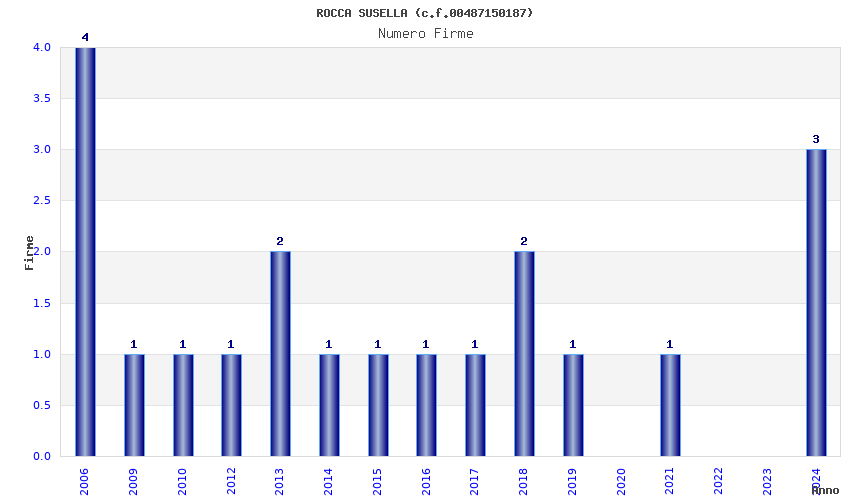 | Anno | Firme | Importi | Media | Naz. | Reg. | Prov. | Comu. |
