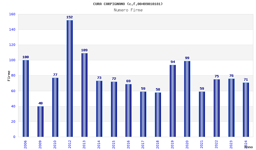 Anno Firme Importi Media Naz. Reg. Prov. Comu.