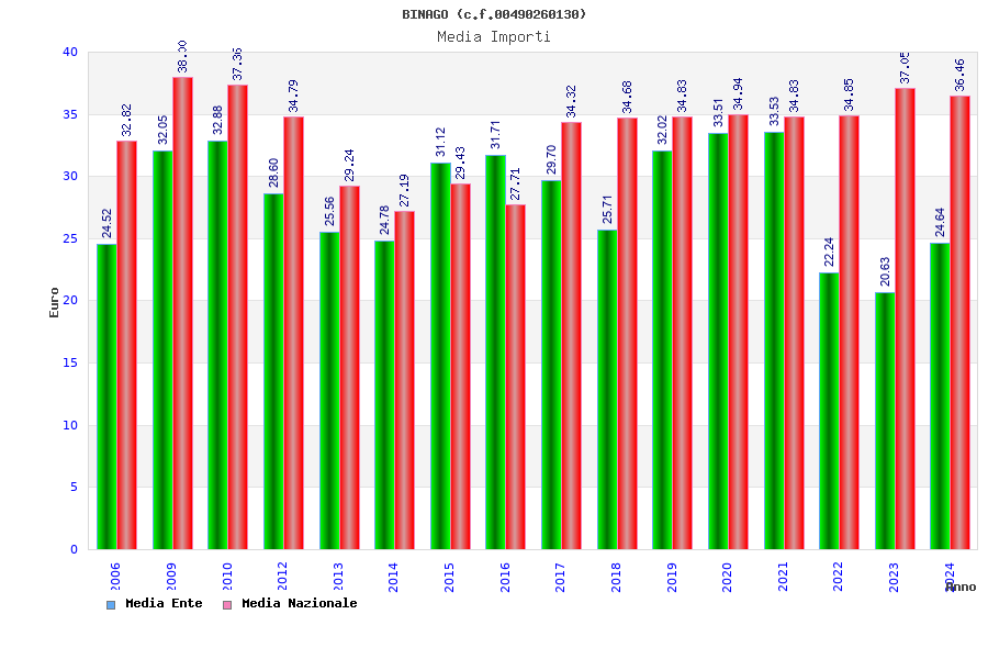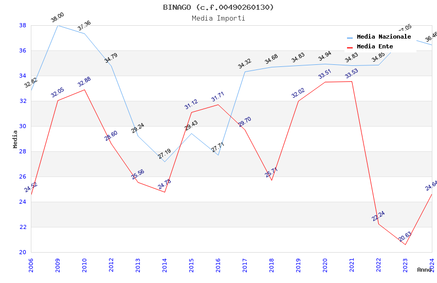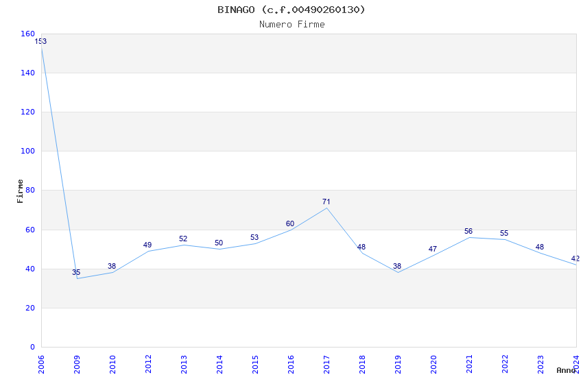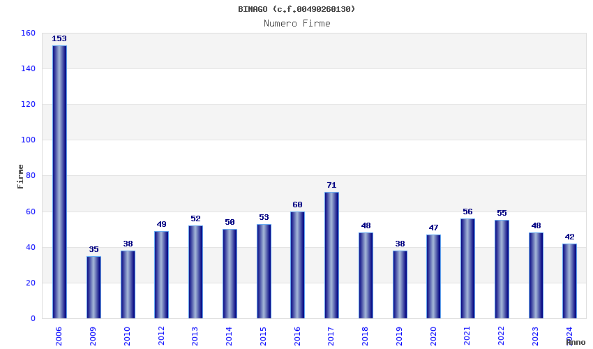 | Anno | Firme | Importi | Media | Naz. | Reg. | Prov. | Comu. |
