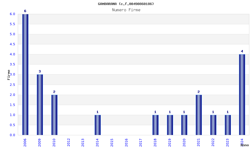 | Anno | Firme | Importi | Media | Naz. | Reg. | Prov. | Comu. |