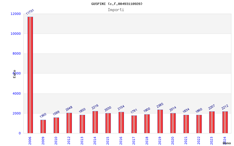 | Anno | Firme | Importi | Media | Naz. | Reg. | Prov. | Comu. |
