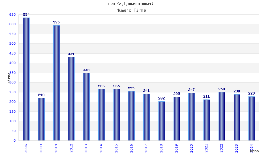 Anno Firme Importi Media Naz. Reg. Prov. Comu.