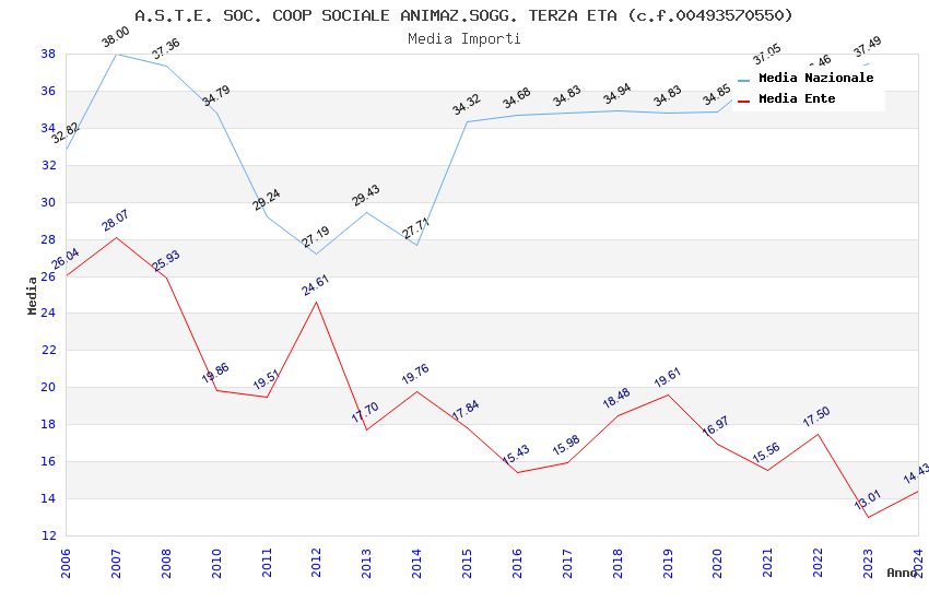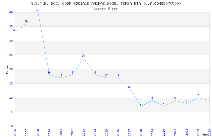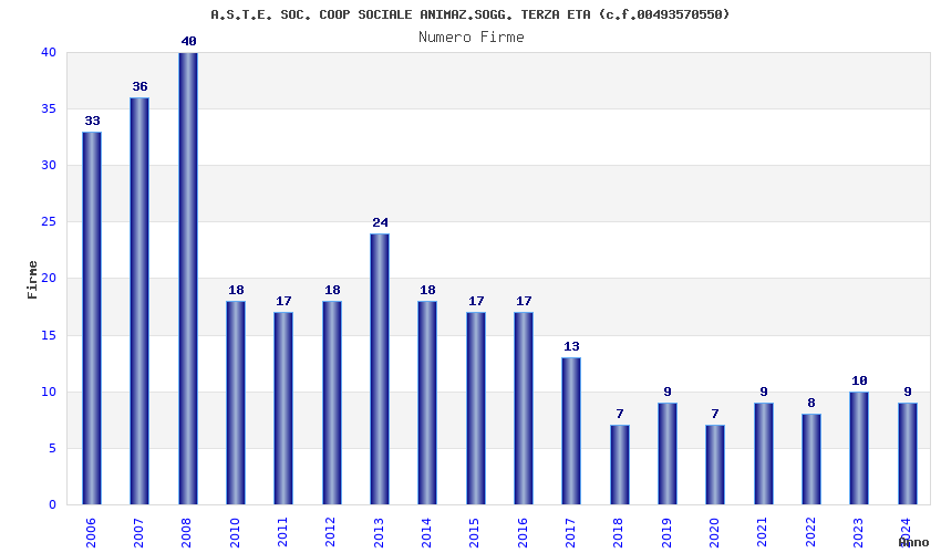 | Anno | Firme | Importi | Media | Naz. | Reg. | Prov. | Comu. |