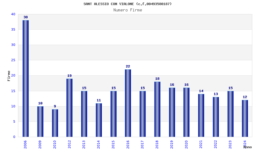| Anno | Firme | Importi | Media | Naz. | Reg. | Prov. | Comu. |