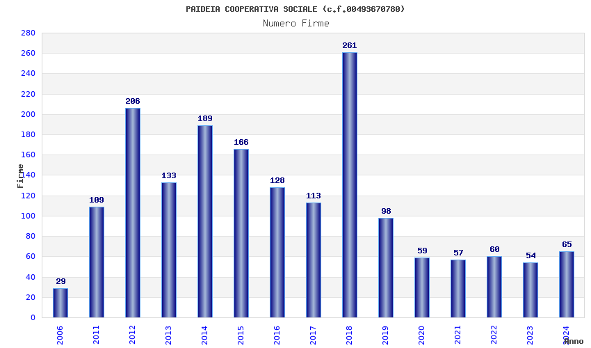| Anno | Firme | Importi | Media | Naz. | Reg. | Prov. | Comu. |