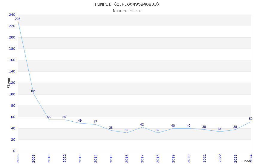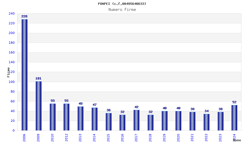 | Anno | Firme | Importi | Media | Naz. | Reg. | Prov. | Comu. |