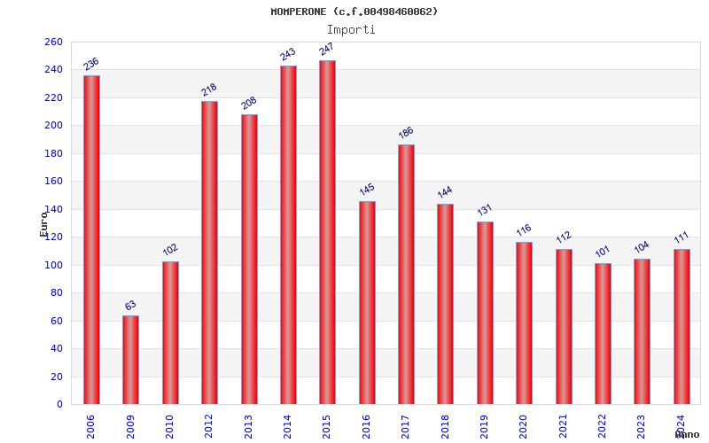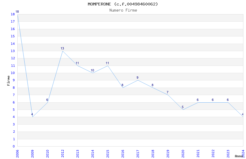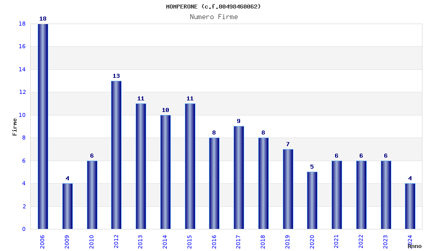 | Anno | Firme | Importi | Media | Naz. | Reg. | Prov. | Comu. |