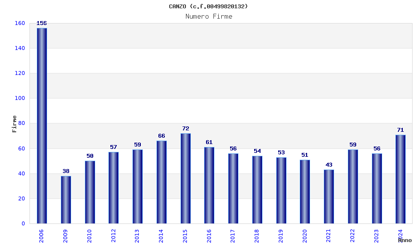Anno Firme Importi Media Naz. Reg. Prov. Comu.