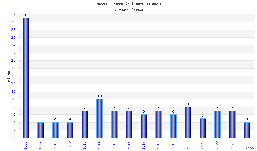 Anno Firme Importi Media Naz. Reg. Prov. Comu.